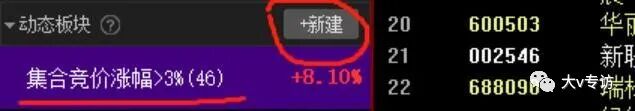 开盘的第一件事就是看竞价,包括市场的整体竞价和热点的竞价结果。整体的市场竞价结果可以用涨幅榜排序来看,我基本是用同花顺设立一个单独的竞价动态板块,条件是集合竞价涨幅>3%。我们需要从这里面挑选出真实高开强化,上一篇的帖子里有讲过。一般来说,股价高开代表竞价强化,股价低开代表竞价弱化。