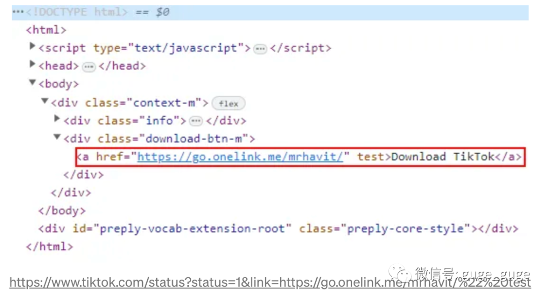 过了一会儿,他们开始意识到实际上是可以控制路径的,这就意味着可以将“link”参数值设置为“https://go.onelink.me/mrhavit/”,而这个链接实际上也会嵌入到 HTML 中。