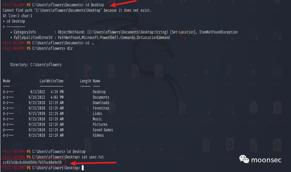 生成 sflowers 的 NTLM 哈希,我可以将其用作身份验证。