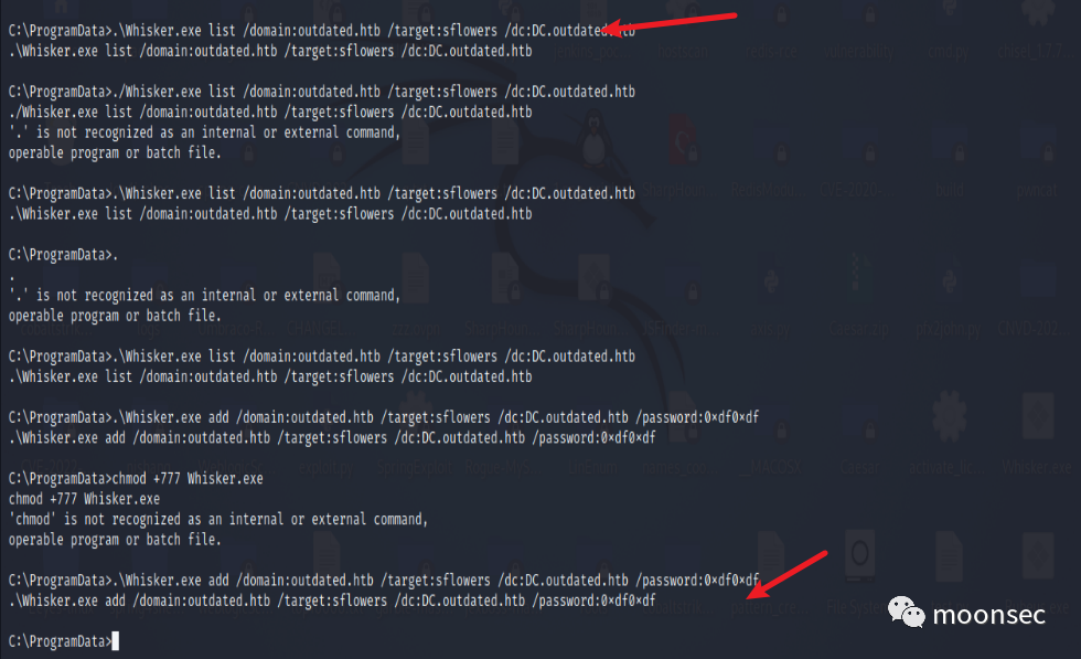 Whisker 是一个 C# 工具,用于通过操纵 Active Directory 用户和计算机帐户的msDS-KeyCredentialLink属性来接管它们,有效地将“Shadow Credentials”添加到目标帐户。