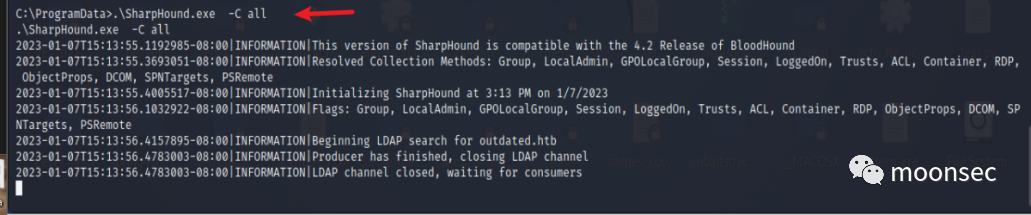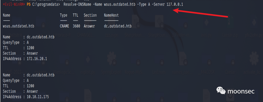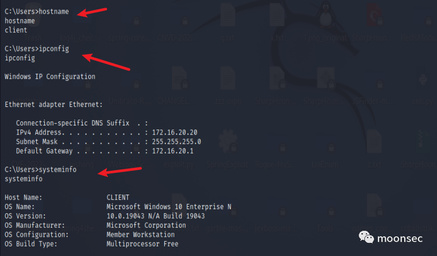 然后接着对其进行收集域内信息。发现其hostname和ip信息。