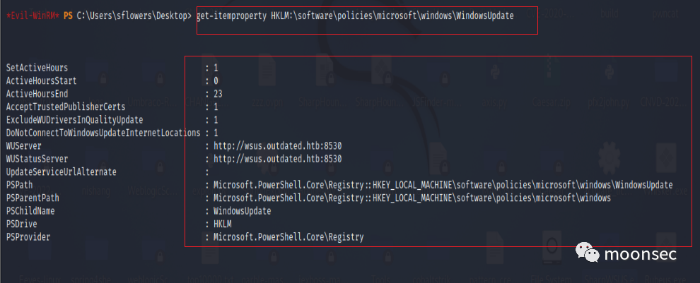 注册表项HKLM:\software\policies\microsoft\windows\WindowsUpdate将显示正在使用的 WSUS 服务器。