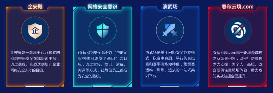 8年来,i春秋高度结合企业在规划建设和运营的不同阶段实际业务需求,不断推出核心产品,构建出全场景、全要素、全业务周期的测试评估体系。值此8周年之际,i春秋推出了4大核心产品免费试用活动。持续加强人、系统和数据的安全风险验证,持续推动企业安全“证无”。