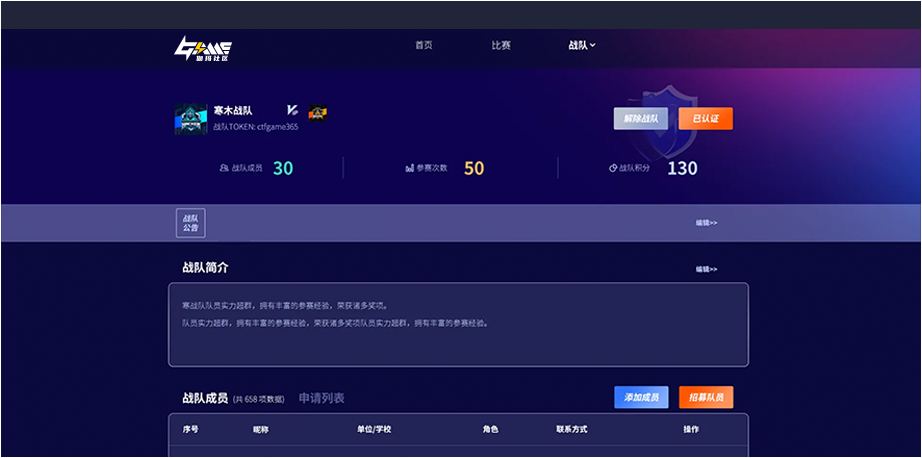 2.战队征途传承:数字化管理战队征途,记录完善的战队参赛历程与历史战绩,作为网安赛事成长之路的鉴证,激励参赛者奋勇向前;