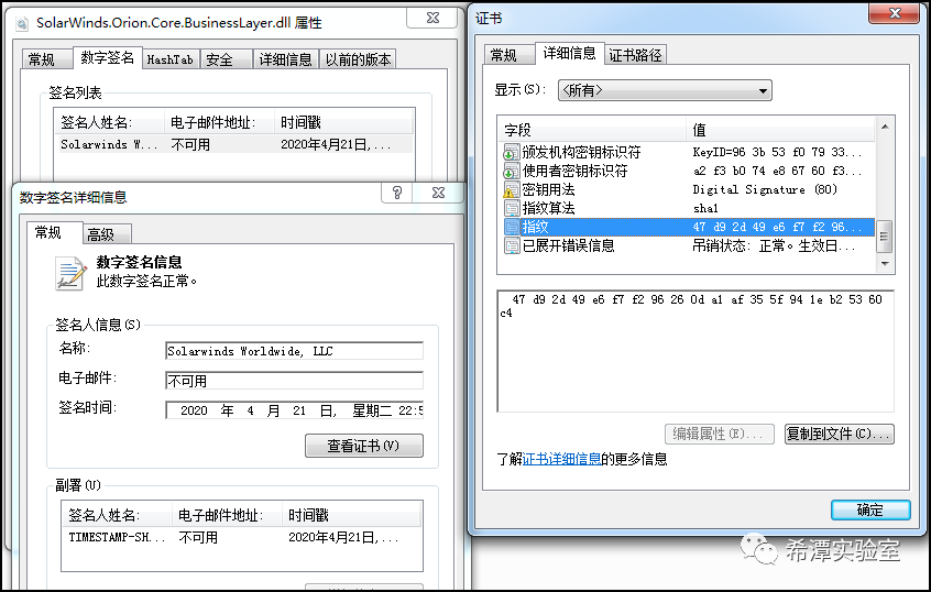 攻击过程:攻击者首先入侵了美国Solarwinds网络管理软件公司内网,接着获取了所有源码编译服务器的权限,通过编写的Sunspot工具(一款后门投递及源码修改工具)监视旗下Orion网管软件更新包的源码编译过程,从源码层面植入Sunburst后门程序,编译后自带Solarwinds合法数字签名Solarwinds Worldwide,LLC,这种方式自带白名单效果,完美绕过各种防护措施。等到Solarwinds官方下发软件更新包后,导致旗下数万家Orion客户公司内网沦陷。