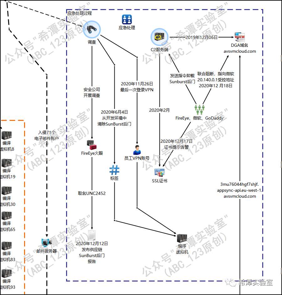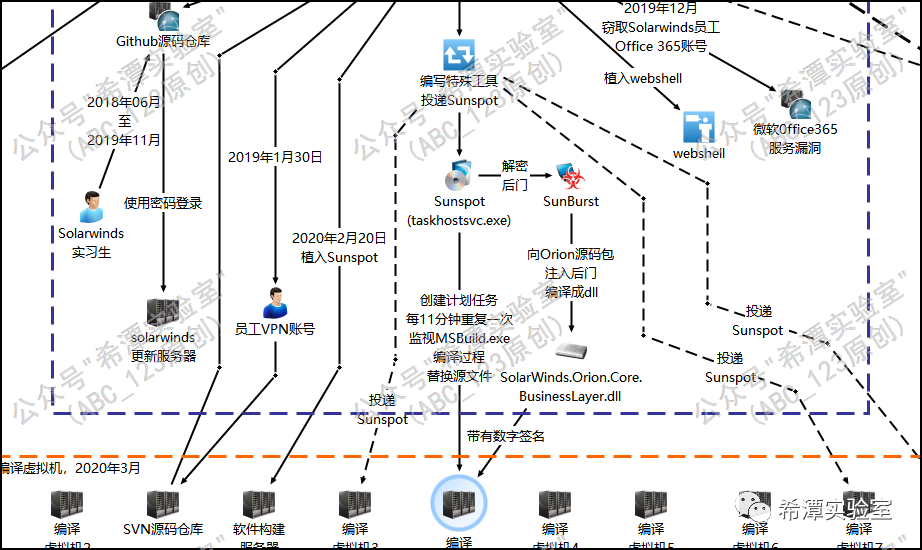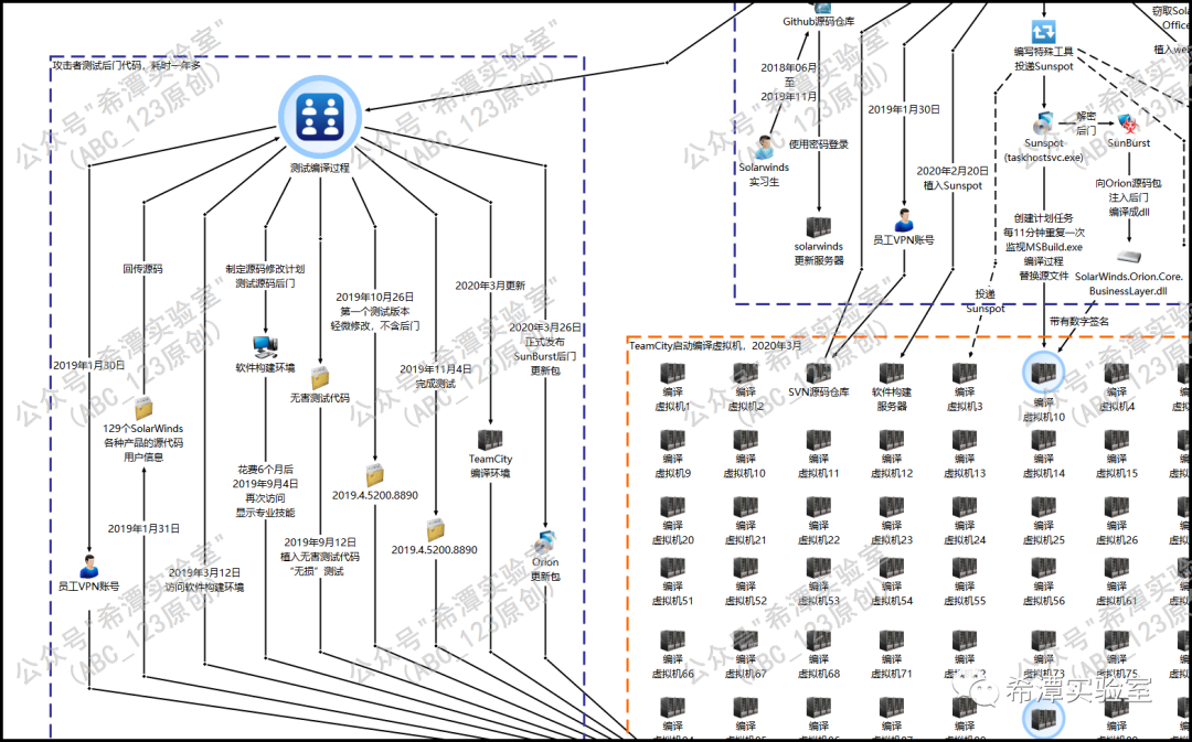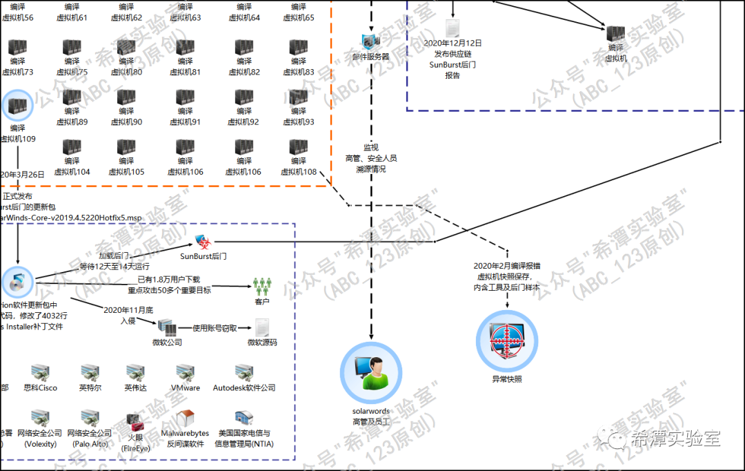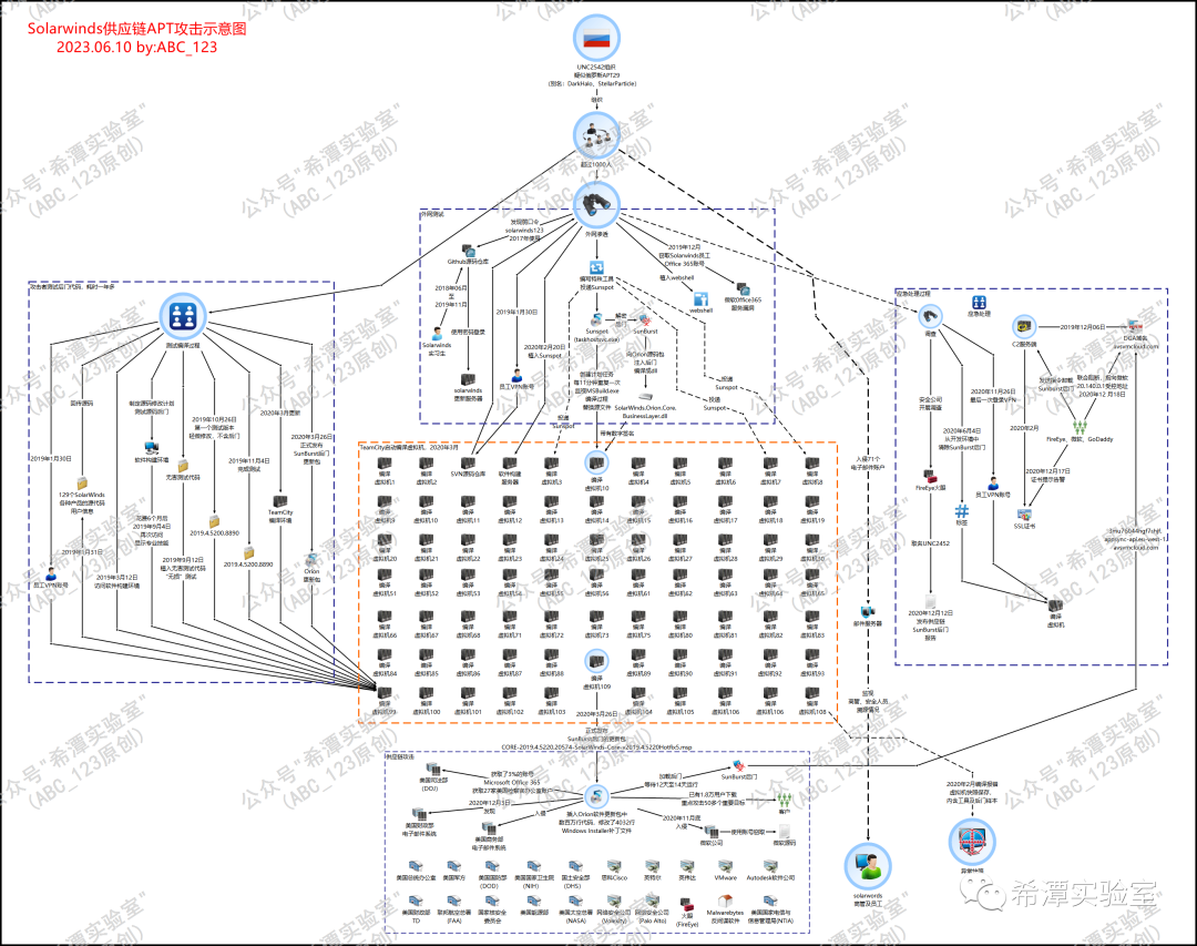 此次APT供应链攻击事件异常复杂,ABC_123重新整理国内外英文报告,结合自己的网络安全实战经验,一字一句对各种分析文章反复校勘,力图还原整个入侵事件的真实全貌,给广大的网络安全从业人员提供一个参考,更好地为祖国的网络安全事业做出贡献。