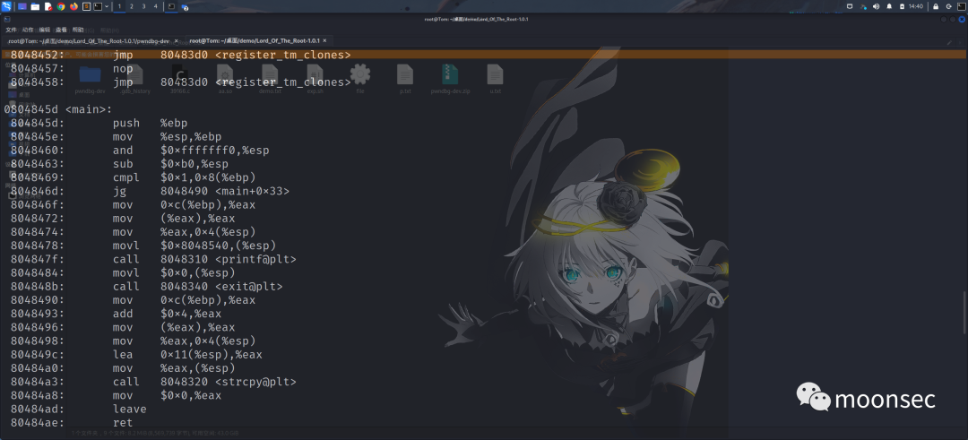 07:001c│ 0xffffd0cc —▸ 0xffffd164 —▸ 0xffffd324 ◂— '/root/demo/file'