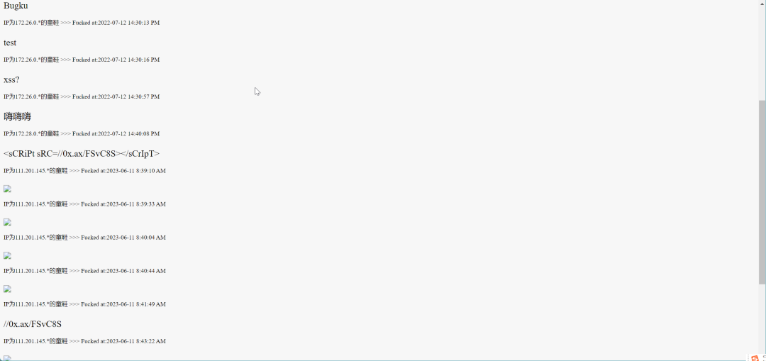 https://ctf.bugku.com/challenges/detail/id/217.htmlhttps://minecraft.fandom.com/zh/wiki/NBT%E6%A0%BC%E5%BC%8Fhttps://ctf.bugku.com/challenges/detail/id/374.htmlhttps://xss.pt/图片探测系统(记录referer、IP、浏览器等信息),只要对方网站可以调用外部图片(或可自定义HTML),常用于探测后台地址