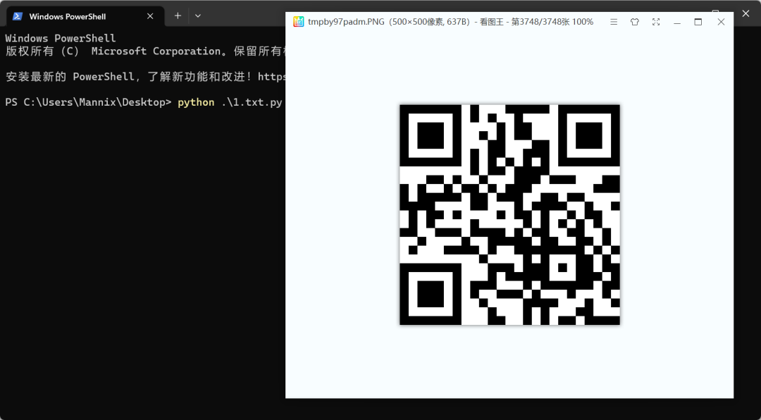 from PIL import Imagedef create_qr_code(data):# 7x7的定位标志flag = [[1, 1, 1, 1, 1, 1, 1],[1, 0, 0, 0, 0, 0, 1],[1, 0, 1, 1, 1, 0, 1],[1, 0, 1, 1, 1, 0, 1],[1, 0, 1, 1, 1, 0, 1],[1, 0, 0, 0, 0, 0, 1],[1, 1, 1, 1, 1, 1, 1]]img = Image.new("1", (25, 25))try:for i, row in enumerate(data):for j, pixel in enumerate(row):# 左上角定位标志if i < 7 and j < 7:img.putpixel((i, j), flag[i][j] ^ 1)# 左下角定位标志elif i > 17 and j < 7:img.putpixel((i, j), flag[i - 18][j] ^ 1)# 右上角定位标志elif i < 7 and j > 17:img.putpixel((i, j), flag[i][j - 18] ^ 1)else:img.putpixel((i, j), int(pixel) ^ 1)img = img.resize((500, 500))img.show()except Exception as e:print("生成二维码时出现错误:", str(e))try:with open("1和0的故事.txt", "r") as f:data = [list(line.strip()) for line in f]create_qr_code(data)except FileNotFoundError:print("找不到文件,请确保文件存在并提供正确的路径和文件名。")except Exception as e:print("读取文件时出现错误:", str(e))