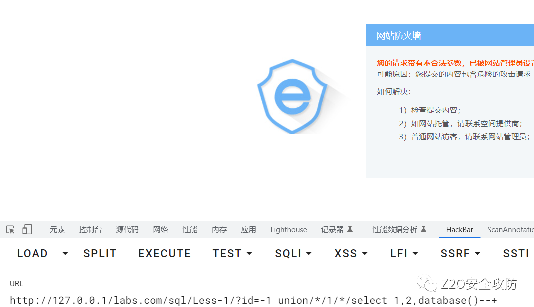 一些 WAF 为了保证核心功能如登陆功能正常,会在内部设立一个文件白名单,或内容白名单,只要和这些文件或内容有关,无论怎么测试,都不会进行拦截。如:WAF 设立了白名单/admin,那么我们的测试 payload 可以通过如下的手法来绕过# 原来被拦截