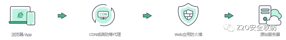请求 → CDN → 云waf → 硬waf → WEB服务器 → 软waf → WEB应用程序(代码waf) → (数据库)waf了解