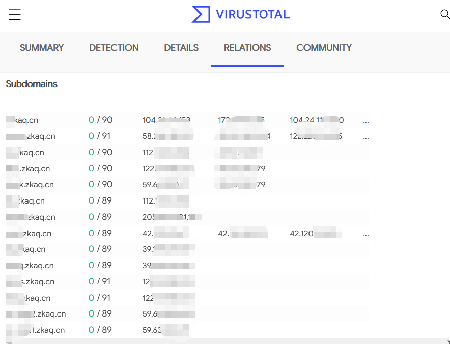 这个原理就是利用查看他的病毒检查报告来收集子域名。