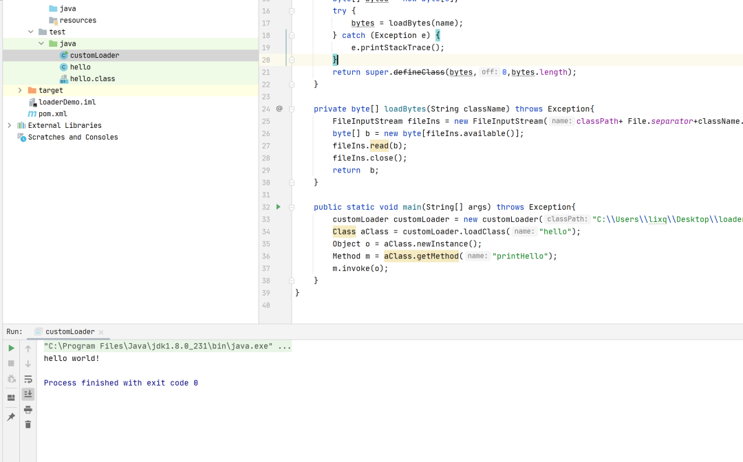 import java.lang.reflect.Method;public class customLoader extends ClassLoader {