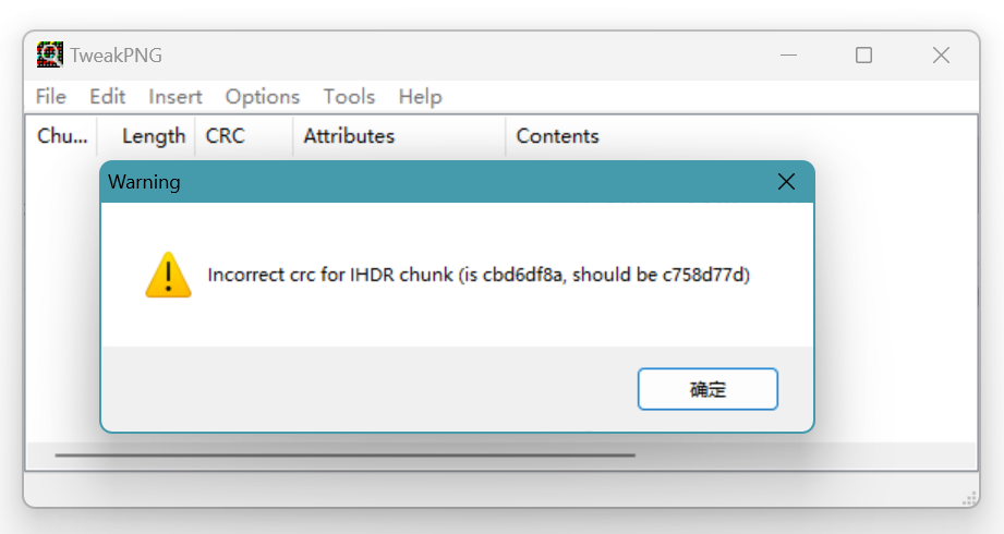 http://www.ip33.com/crc.htmlhttp://www.libpng.org/pub/png/apps/pngcheck.htmlCRC error in chunk IHDR (computed c758d77d, expected cbd6df8a)import binasciiimport structimport threadingcrc32key = 0xcbd6df8anum_threads = 8 # 设置线程数class HeightFinder(threading.Thread):def __init__(self, start_height, end_height):super(HeightFinder, self).__init__()self.start_height = start_heightself.end_height = end_heightdef run(self):for i in range(self.start_height, self.end_height):try:height = struct.pack('>i', i)data = b'\x49\x48\x44\x52' + b'\x00\x00\x01\xF4' + height + b'\x08\x06\x00\x00\x00'# 29~32四个字节:CB D6 DF 8A为图片的crc校验值由从第12个字节到第28个字节的十七位字节进行crc计算得到crc32result = binascii.crc32(data) & 0xffffffffif crc32result == crc32key:print(''.join([format(c, '02x') for c in height]))returnexcept Exception as e:print(f"An error occurred: {e}")def find_height():threads = []height_range = 65535chunk_size = height_range // num_threadsfor i in range(num_threads):start_height = i * chunk_sizeend_height = (i + 1) * chunk_size if i < num_threads - 1 else height_rangethread = HeightFinder(start_height, end_height)threads.append(thread)thread.start()for thread in threads:thread.join()if __name__ == '__main__':find_height()