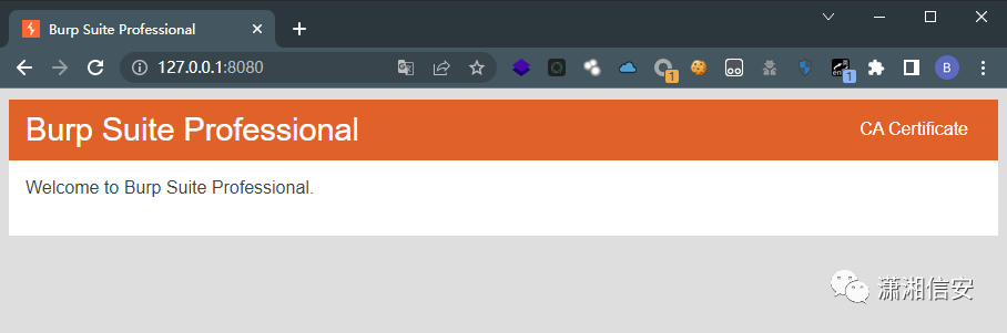 为了能顺利抓取HTTPS,我们还得先导入下证书,直接访问 http://127.0.0.1:8080/ 在右上角CA Certificate下载证书,http://burp 得在浏览器设置好代理才能访问。