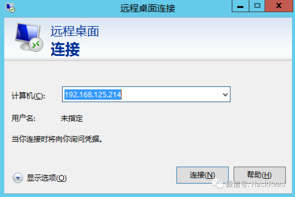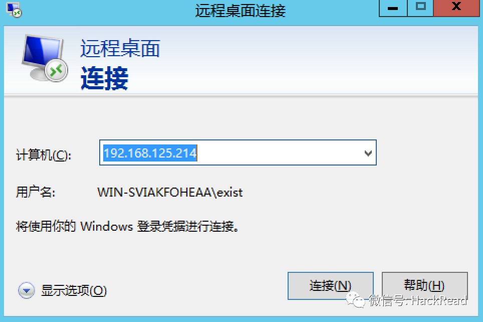 我们发现mstsc提示将使用我们到windows登录凭据进行连接。