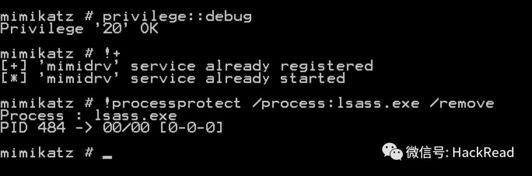 mimikatz能够通过加载其驱动程序来绕过LSA Protection。在实际使用中需要注意mimikatz同目录下需要有驱动程序mimidrv.sys
