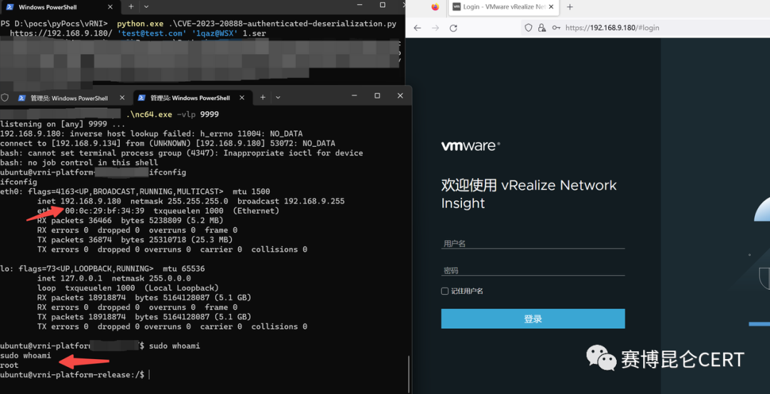 CVE-2023-20887 命令注入漏洞 默认配置下即可利用,无需任何利用条件。CVE-2023-20888 反序列化漏洞 需要普通用户权限。赛博昆仑CERT已复现CVE-2023-20887(命令注入漏洞)与CVE-2023-20888 (反序列化漏洞)CVE-2023-20887 命令注入截图如下, 执行反弹shell。CVE-2023-20888 反序列化漏洞截图如下,执行反弹shell。![]()