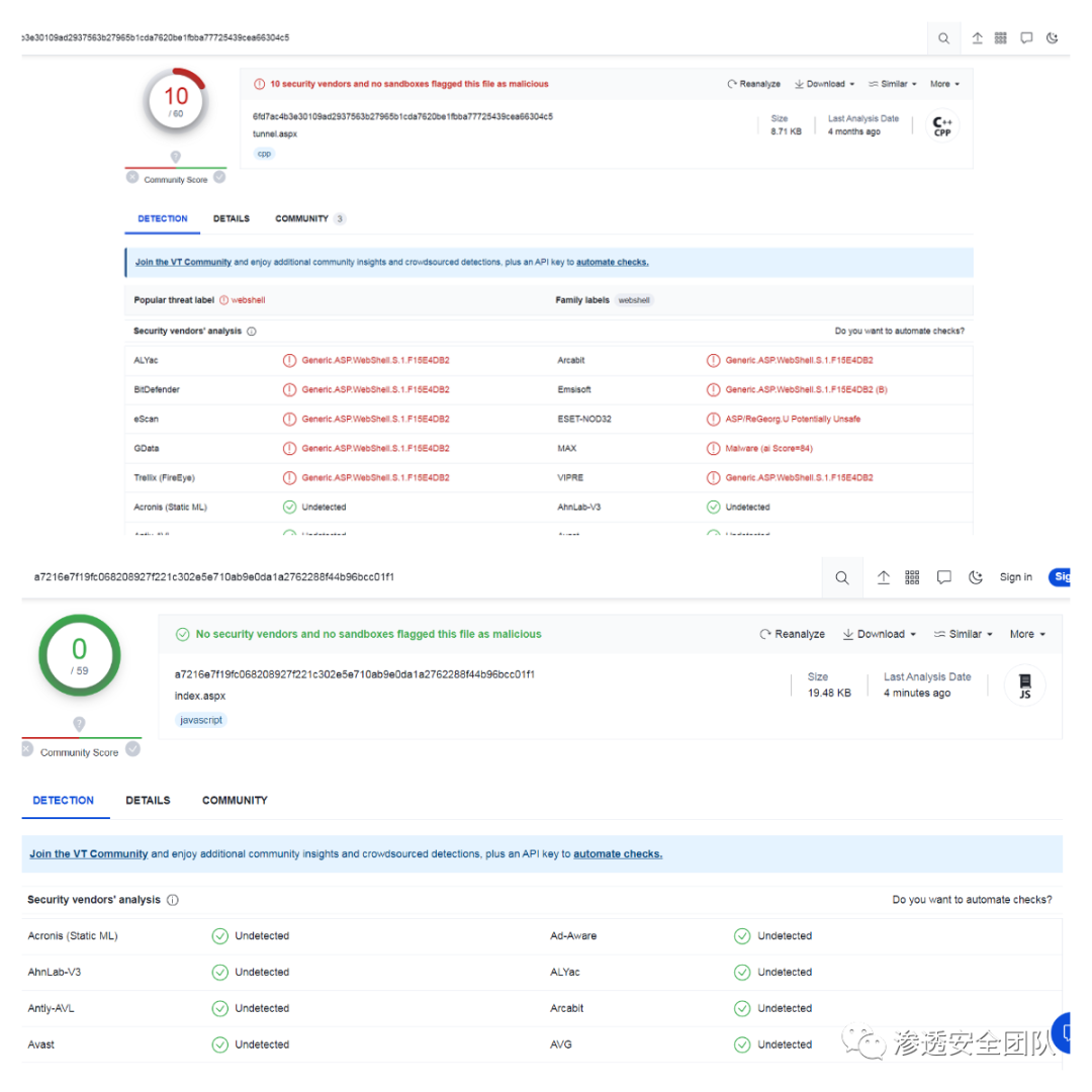 [BypassNeoASPX.py]\-VT查杀0报毒:https://www.virustotal.com/gui/file/a7216e7f19fc068208927f221c302e5e710ab9e0da1a2762288f44b96bcc01f1?nocache=1\-修改默认文本内容 NeoGeorg says, 'All seems fine' => NEO, 'All OK'\-aspx免杀处理( https://xz.aliyun.com/t/11953 )[neoreg.py]\-修改默认文本内容 NeoGeorg says, 'All seems fine' => NEO, 'All OK'