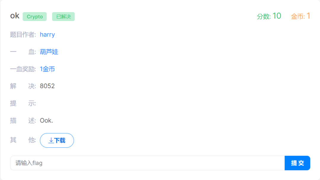 https://ctf.bugku.com/challenges/detail/id/48.html根据提示:Ook.