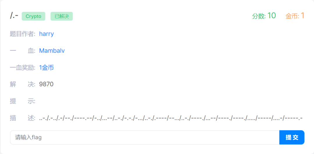https://ctf.bugku.com/challenges/detail/id/46.html..-./.-../.-/--./----.--/-../...--/..-./-.-./-.../..-./.----/--.../..-./----./...--/----./----./...../-----/....-/-----.-看格式这就是莫尔斯电码