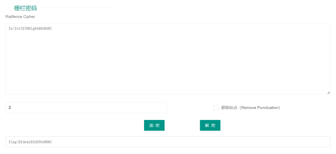 http://www.hiencode.com/railfence.htmlflag{6fde4163df05d900}19.ok