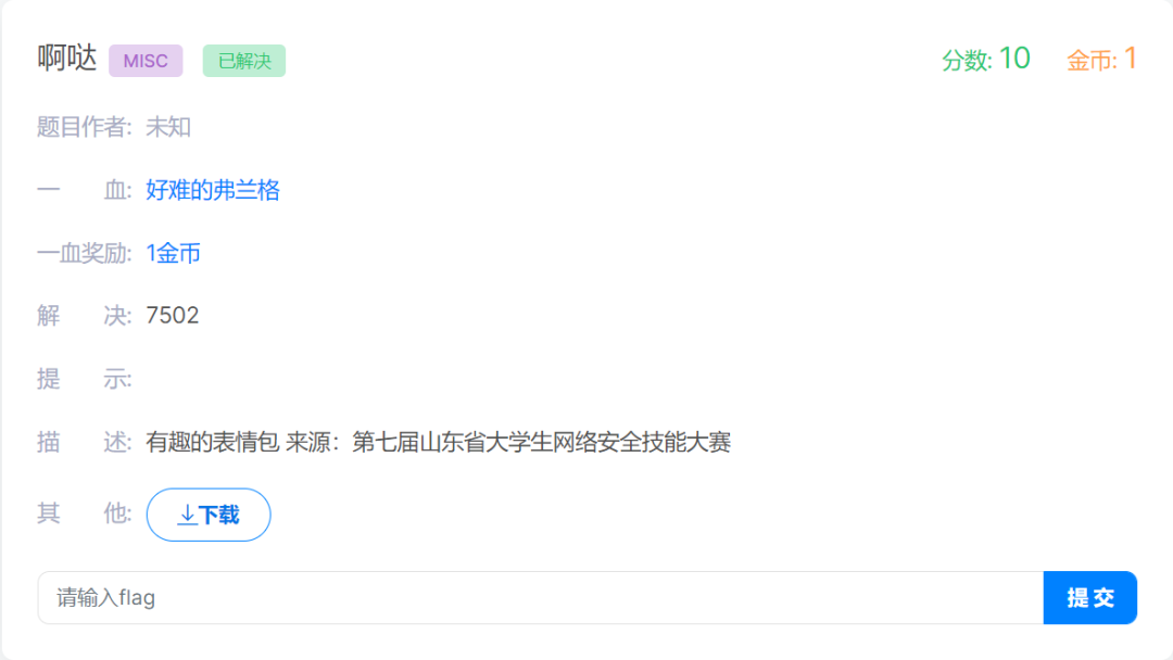 https://ctf.bugku.com/challenges/detail/id/6.html下载后是一个表情包,猜测大概率是图片隐写术题目