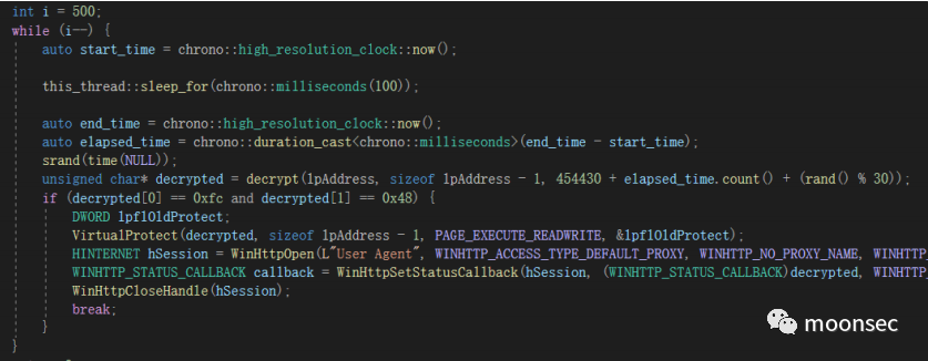 使⽤⾃定义的异或加解密shellcode后的代码: