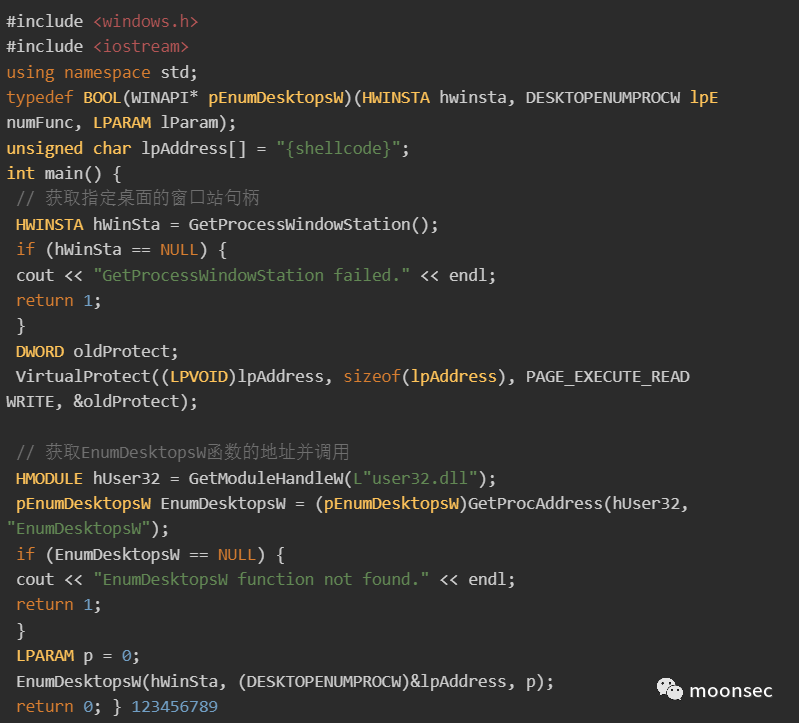 下⾯是⼀个动态EnumDesktops回调加载器: