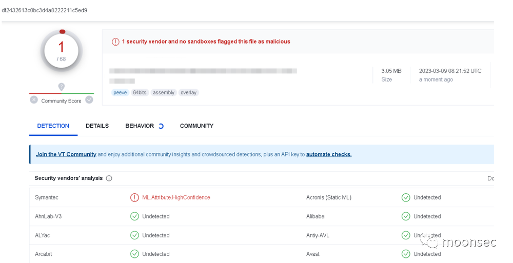 之前使⽤过对key进⾏⼀点混淆,在key中插⼊Sleep()和rand()碰撞出key的⽅法,有⼀点的效果,可以绕 过95%的杀软,但还是绕不过defender,在不插⼊花代码的情况下还是很容易被defender的静态查杀:
