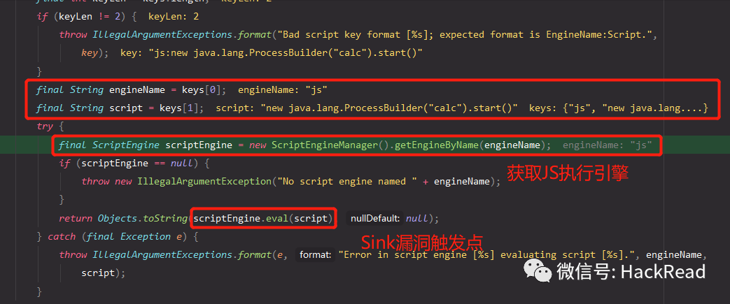 之后的代码就是获取js脚本引擎,并通过ScriptEngine.eval的方法执行