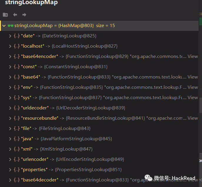 这里获取的StringLookup就是之前使用StringSubstitutor.createInterpolator()创建实例化对象的地方