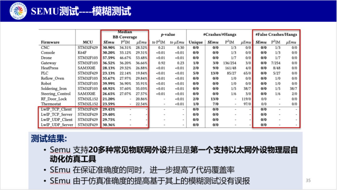 在模糊测试方面,Semu支持20多种常见物联网外设并且是第一个支持以太网外设物理层自动化仿真工具,SEmu在保证准确度的同时,进一步提高了代码覆盖率,并且没有误报。