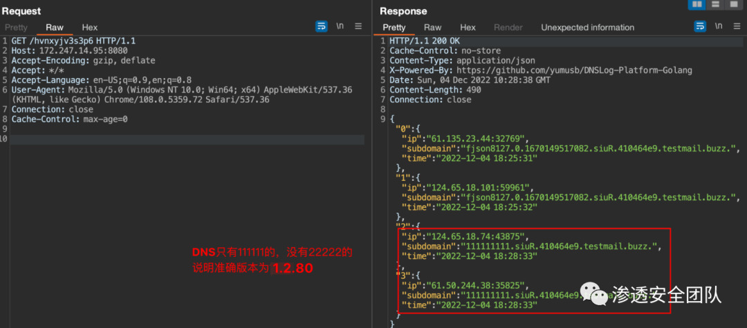 1.2.80版本探测如果收到了两个dns请求,则证明使用了1.2.83版本,如果收到了一个 dns 请求,则证明使用了1.2.80版本。