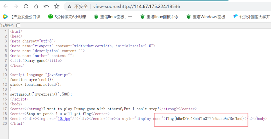 view-source:http://114.67.175.224:11099/flag{5b3f279d810f132eab718bba5eb20fb3}27.你必须让他停下