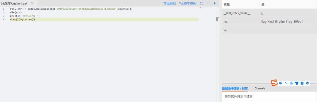 res, err := codec.DecodeBase64("991YiZWOz81ZhFjZfJXdwk3X1k2XzIXZIt3ZhxmZ".Reverse())die(err)println("解码后为: ")dump([]byte(res))