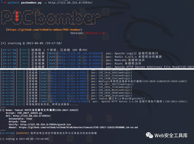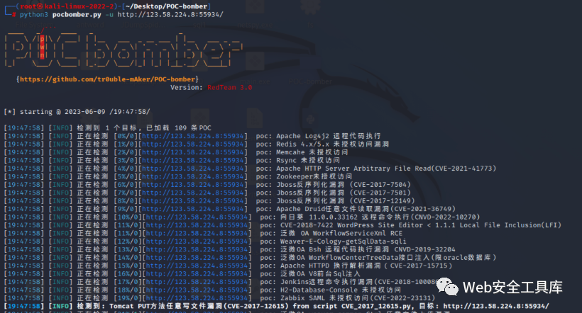 本项目收集互联网各种危害性大的 RCE · 任意文件上传 · 反序列化 · sql注入 等高危害且能够获取到服务器核心权限的漏洞POC/EXP,并集成在 POC bomber 武器库中,利用大量高危害POC对单个或多个目标进行模糊测试,以此在大量资产中快速获取发现脆弱性目标,获取目标服务器权限。适用场景包括但不仅限于以下:0x02 安装与使用