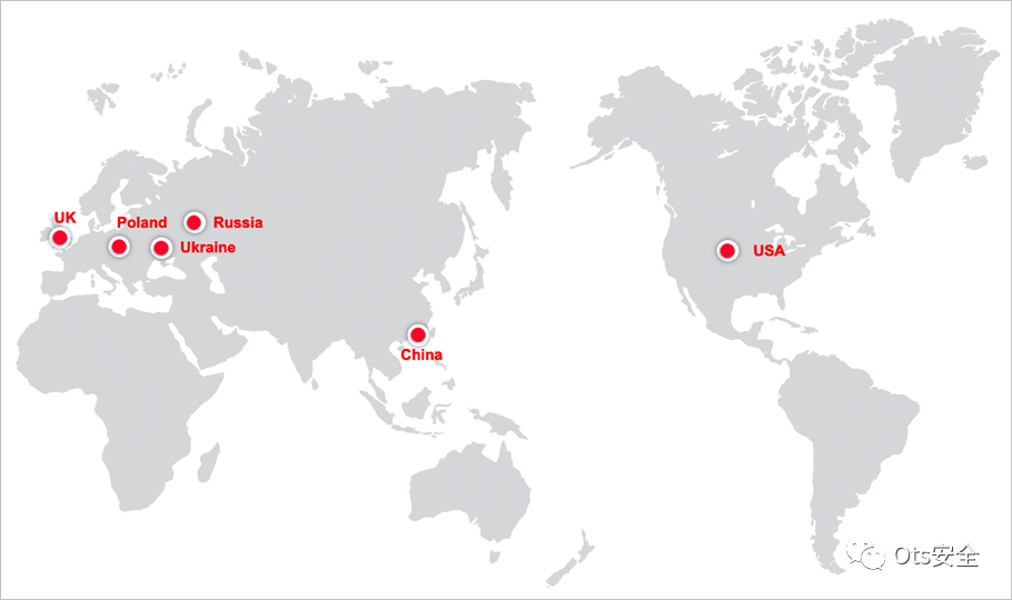 2022 年 12 月初,我们在世界主要地区放置了传感器(蜜罐服务器),重点是中欧和与之相关的紧张局势:俄罗斯、乌克兰、波兰、英国、中国和美国。以这种方式传播的传感器(蜜罐服务器)使我们能够检测和分析可能特定于特定地区或国家的攻击,这对于识别和缓解独特的区域威胁很有用。