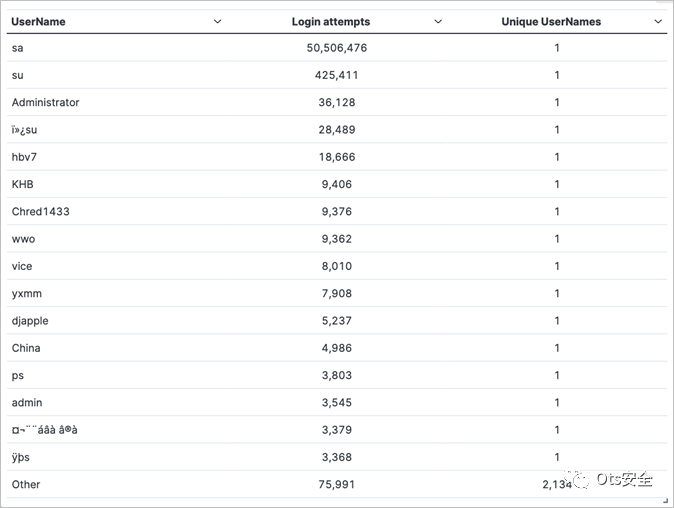 我们还监控了其他数据库的登录尝试。虽然我们没有在这里详细讨论它们,但我们确实获得了有关它们的宝贵信息。
