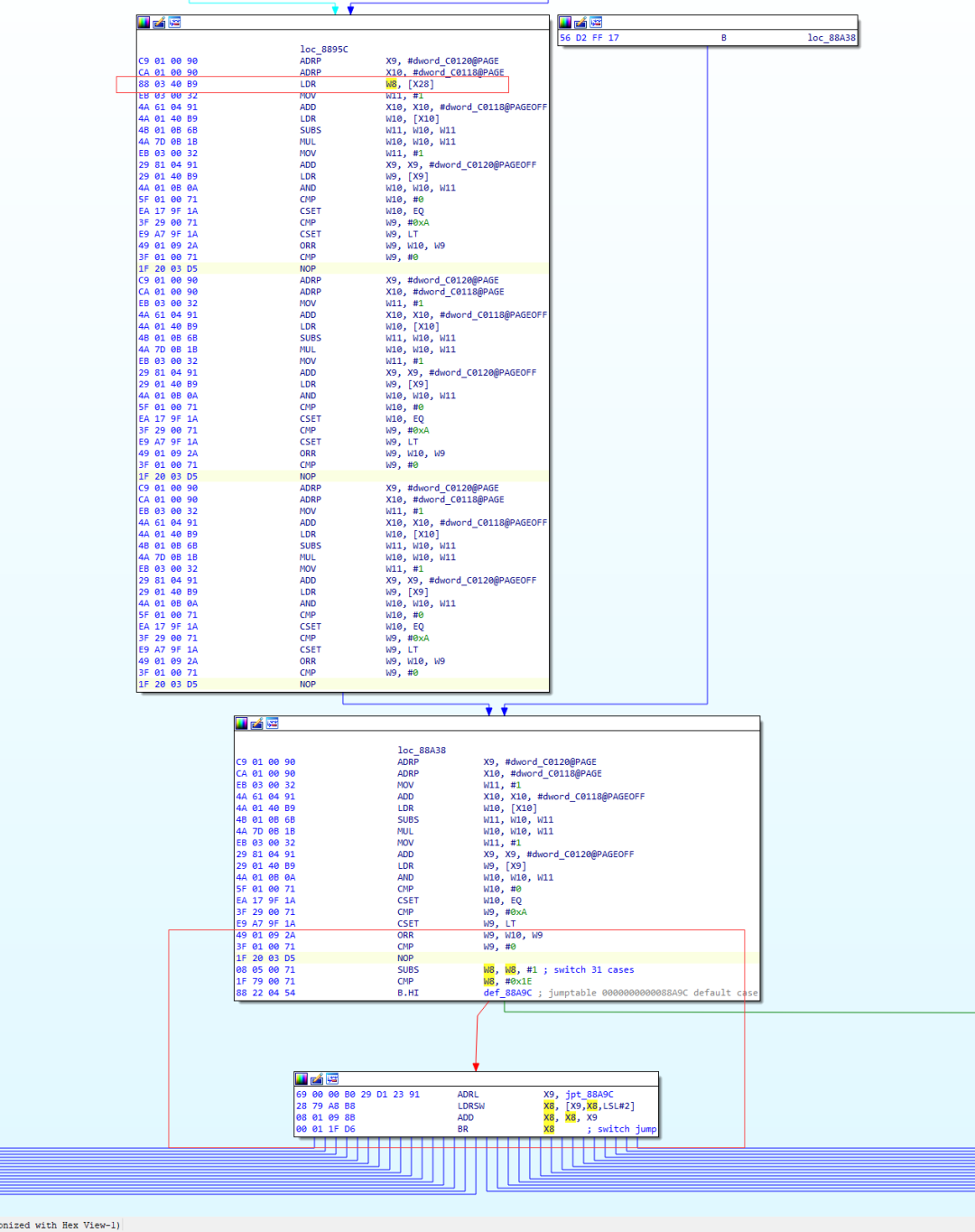 由流程图可知,下一个代码块的索引存在X28指向的地址。