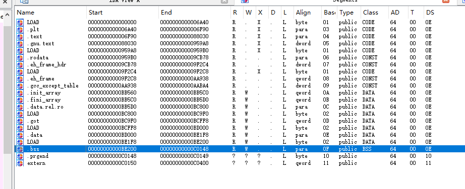 .bss段的内存属性为可读可写,为了不影响ida对.bss中其他变量的分析,把这两个地址单独放在一个段。