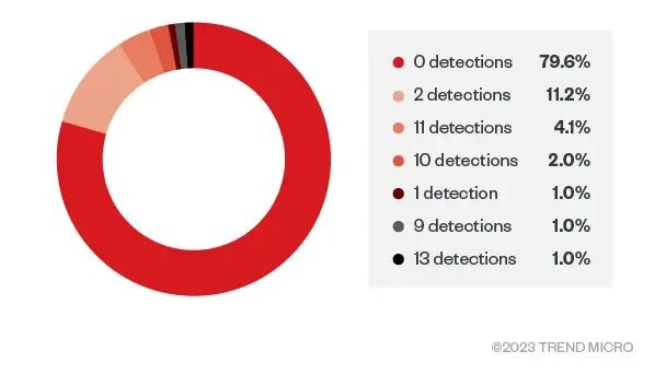 趋势科技总共分析了从公共存储库中获取的数百个批处理样本,结果显示,80%的样本在安全解决方案中没有被检测到。这一发现验证了BatCloak逃避安全服务提供商采用的传统检测机制的能力。