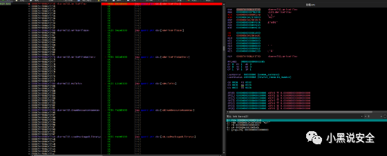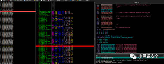 可以看到当我们将木马文件丢到 x64dbg里面的时候他有一个窗口