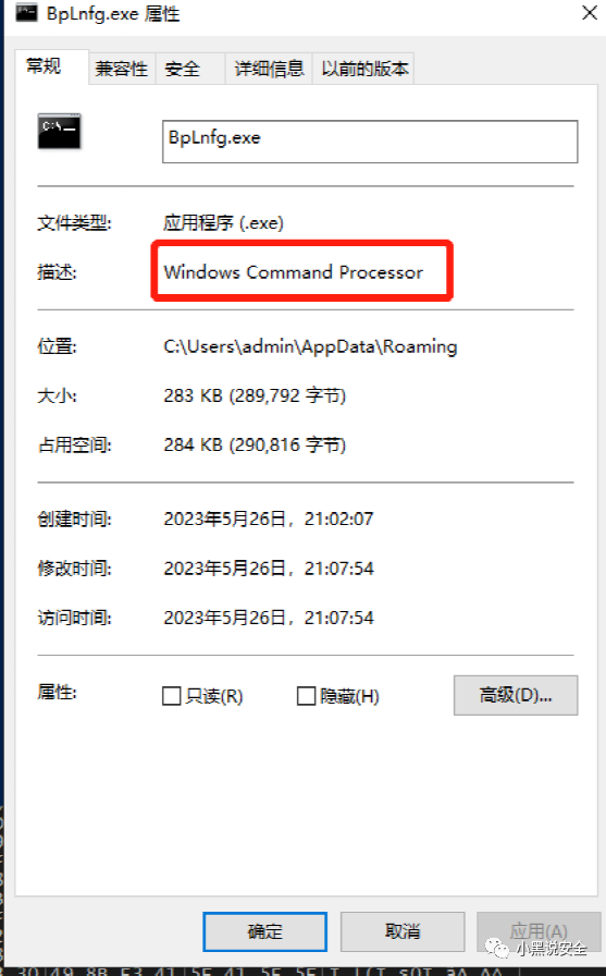 将C\windows\system32\cmd.exe复制到C:\Users\wowfk\AppData\Roaming\BpLnfg.exe