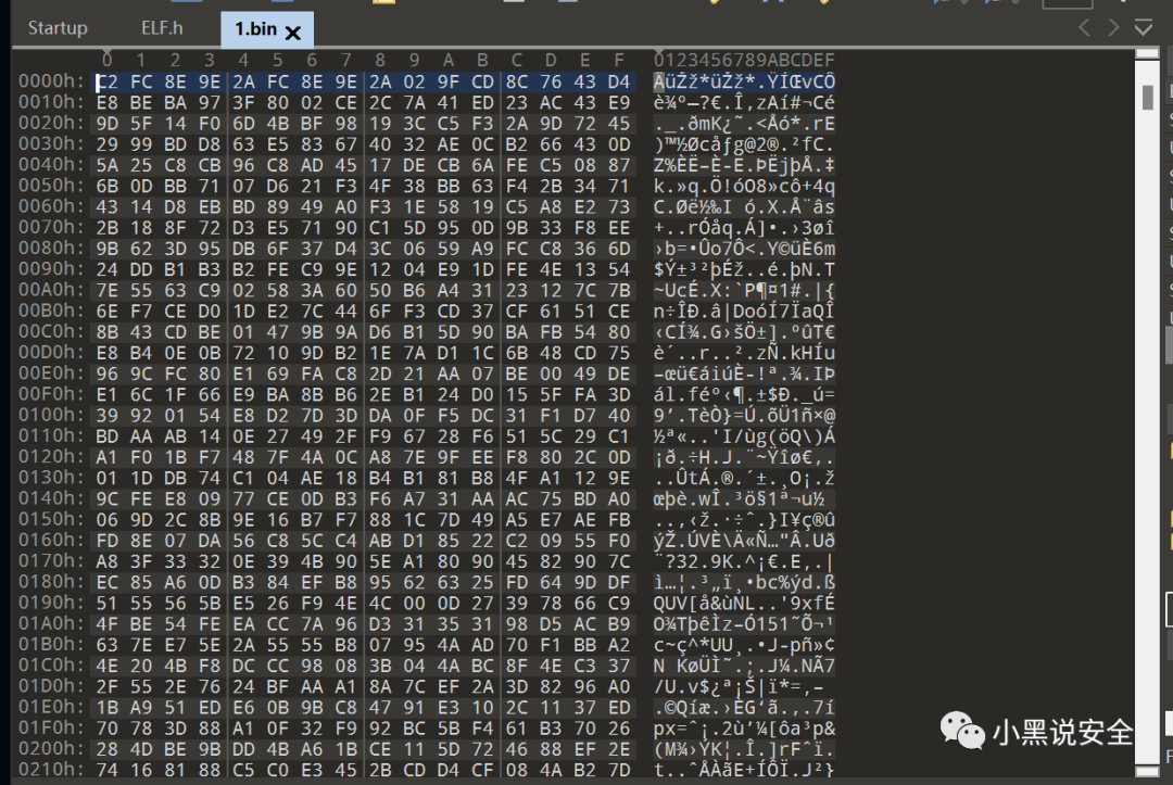 将样本下载回来另存为1.bin,通过010打开查看一下发现是有明显的加密,不是一个正常的图片,那么基本可以确定是一个🐎
