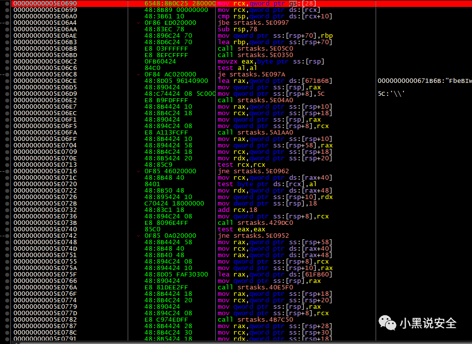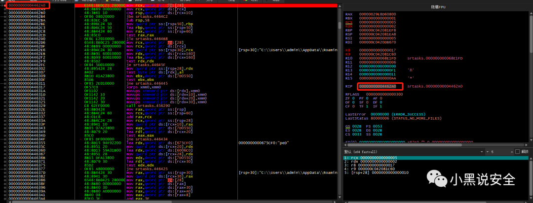 void main_Dlskfhoiuodgnr(){main_Shvssvdsvfdsbewwerbggf(0LL);}void __golang main_Shvssvdsvfdsbewwerbggf(__int64 a1){github_com_gonutz_ide_w32_GetConsoleWindow();if ( v1 ){v4 = v1;github_com_gonutz_ide_w32_GetWindowThreadProcessId(v1);github_com_gonutz_ide_w32_GetCurrentProcessId();if ( v2 == v3 )github_com_gonutz_ide_w32_ShowWindowAsync(v4, a1);}}GetConsoleWindow()--返回值是与调用进程关联的控制台所使用的窗口的句柄;GetWindowThreadProcessId()--检索创建指定窗口的线程的标识符,以及创建该窗口的进程(可选)的标识符。GetCurrentProcessId--检索调用进程的进程标识符。ShowWindowAsync--显示/隐藏运行窗口总的来说main_Dlskfhoiuodgnr这个函数与上篇当中的main_Hvdf_HCzKr()的做法是一模一样为了隐藏自己的运行窗口