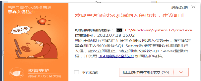 主机上安装360,直接通过sqlmap执行os-shell会被拦截,尝试sql-shell进行命令执行,步骤和2008大致基本相同,先通过xp_dirtree慢慢找到网站路径,在开启sp_OACreate,最后写入shell。