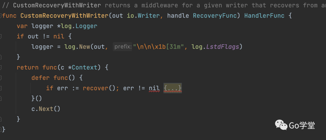 在gin中,正是该中间件的应用,确保了web服务的健壮性。当然,其他的web框架也有同样的机制,实现原理也是一样的。